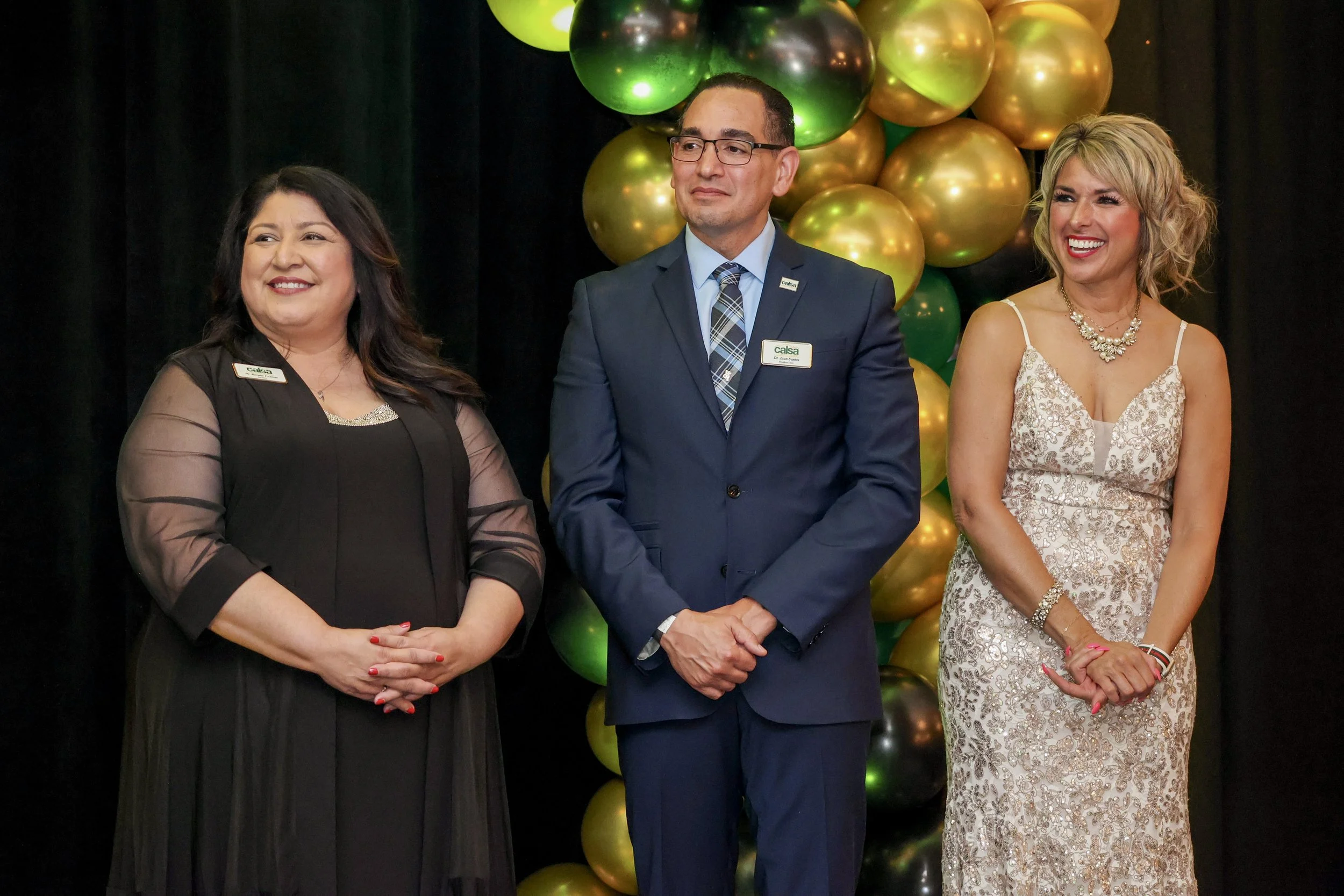CALSA_ELECTION5: From left: CALSA 2024–25 President Dr. Roxane Fuentes, President-Elect Dr. Juan Manuel Santos, and Immediate Past President Dr. Zandra Jo Galván recognize leaders during the Summer Institute Gala on June 28, 2024.