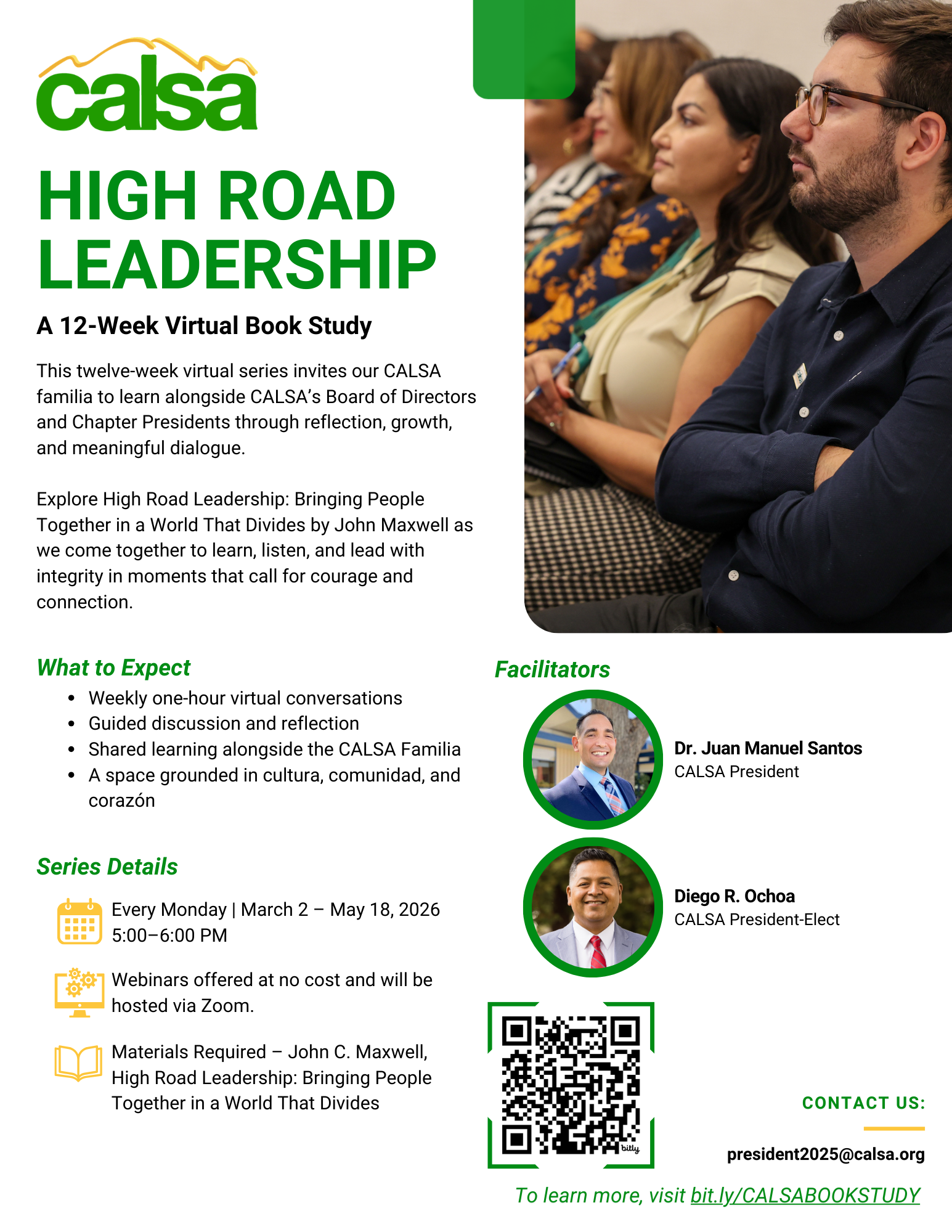 This twelve-week virtual series invites our CALSA familia to learn alongside CALSA’s Board of Directors and Chapter Presidents through reflection, growth, and meaningful dialogue.
