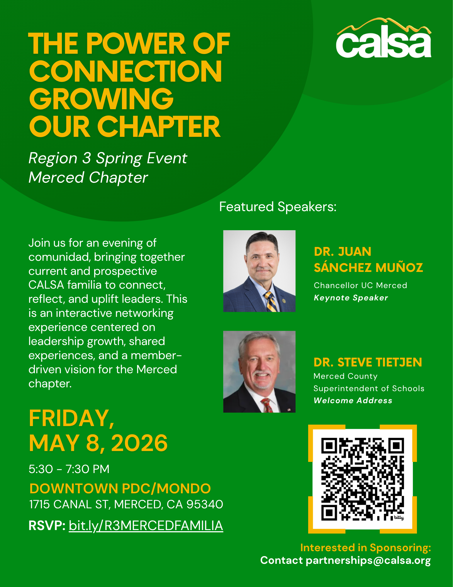 Join us for an evening of comunidad, bringing together current and prospective CALSA familia to connect, reflect, and uplift leaders. This is an interactive networking experience centered on leadership growth, shared experiences, and a member-driven vision for the Merced chapter.