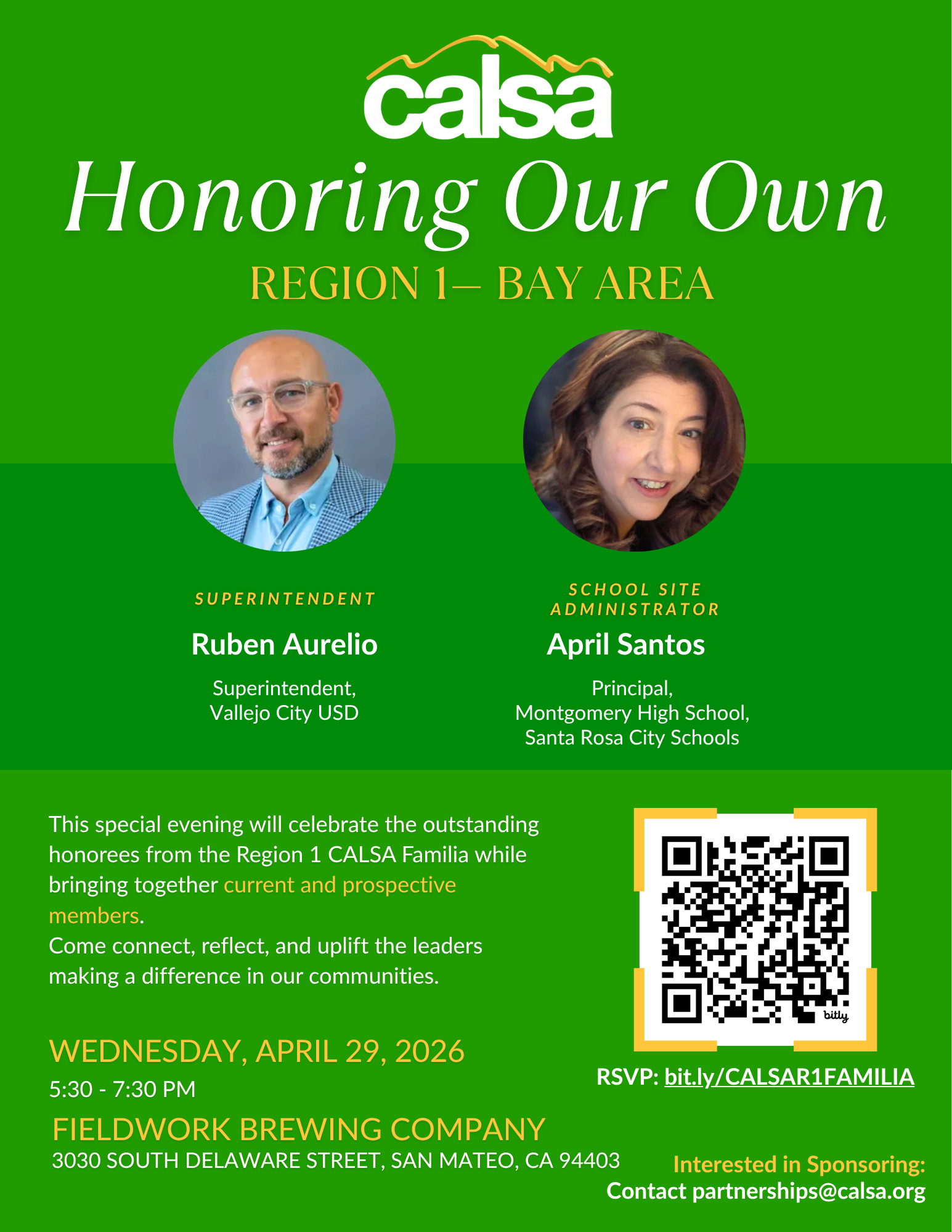 This special evening will celebrate the outstanding honorees from the Region 1 CALSA Familia while bringing together current and prospective members.